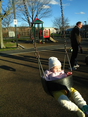 unfortunately she was swinging into the sun the whole time, but it was actually cuter, i think. she squinted her little eyes shut and shrieked with delight each time. i think she was scaring the kids next to us.