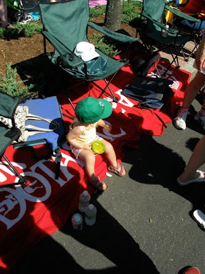 before we wrap up the birthday week celebrations, i have a few more posts from the fourth of july. as if bebe's first baseball game wasn't enough of an experience, we also treated her to her first parade! and when we do firsts around here, we don't screw around. this parade happens to be the oldest, longest (both in elapsed time and in physical length), and most amazing parade in history! all, some, or none of that may be true. don't know, don't care. it's definitely one of the hottest. as in heat. from the sun.